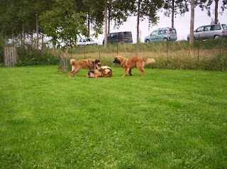 We zijn met Toshi en Thaigo naar de clubmatch in Deinze geweest ,Bolke was er ook .Toshi en Bolke hadden belovend en Thaigo veelbelovend. Alle drie hadden ze een mooi keuringsrapport.Ik ben dus heel tevreden.Chantal d'r mannen hebben het wederom heel goed gedaan .De foto's waren helaas zo donker dat het geen zin heeft ze op het blog te zetten.Ik zet er nog een paar op van de puppydag die Chantal heeft genomen.
